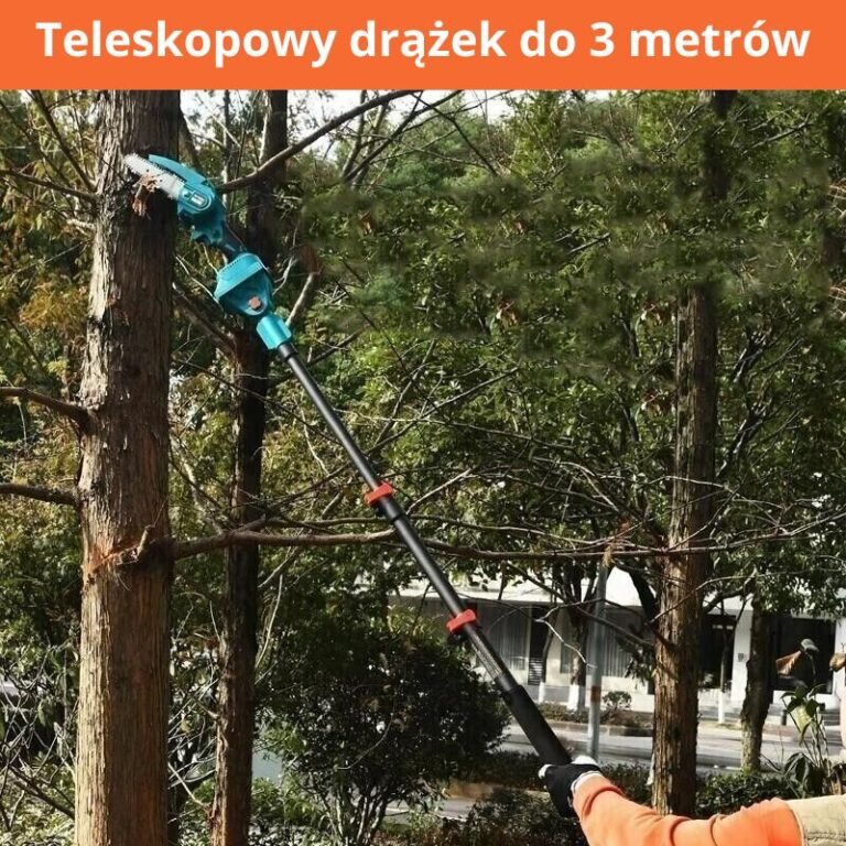Dzięki regulowanemu ramieniu od 1,8 do 3 metrów możesz dostosować długość do swoich potrzeb, sięgając wysokich gałęzi lub odległych obszarów w całkowitym bezpieczeństwie, bez konieczności używania drabin lub dodatkowego sprzętu. Idealne do pielęgnacji ogrodu, przycinania drzew lub czyszczenia żywopłotów, ta pilarka zapewnia niezrównaną kontrolę i zmniejsza zmęczenie.